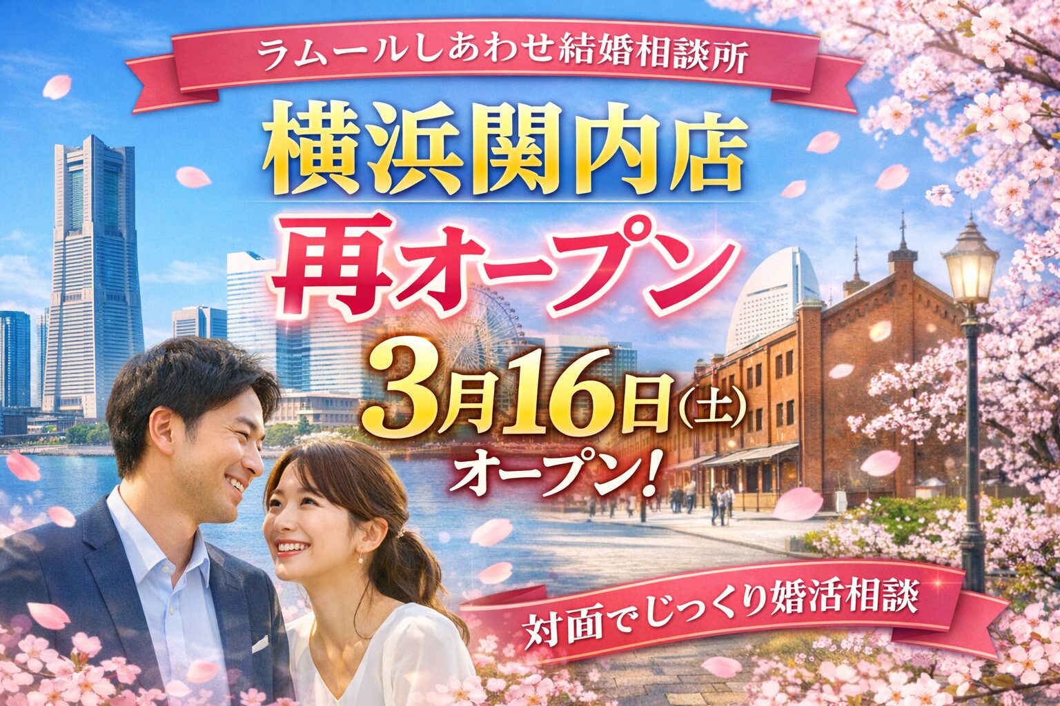 このたび当相談所では、婚活サポートの強化と対面相談の充実を目的として、2026年3月16日より「横浜関内店」を再オープンすることとなりました。