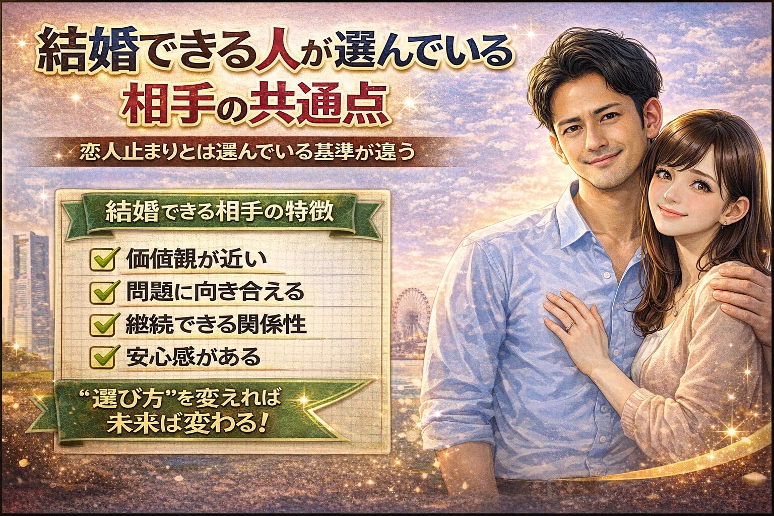 「恋人はいるのに結婚に進まない」「どんな人を選べば結婚できるのか分からない」──そんな悩みを抱えていませんか。