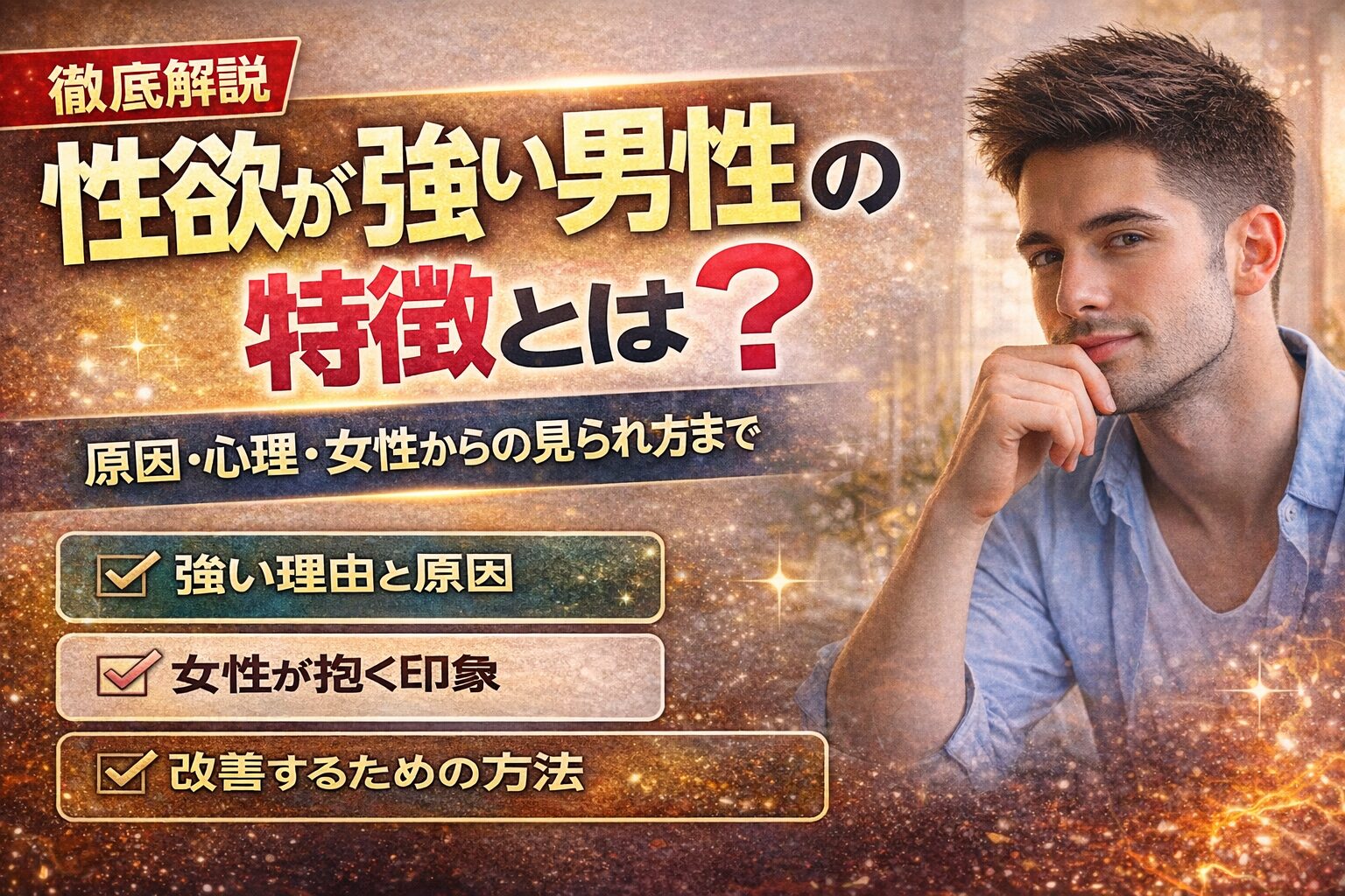 本記事では、性欲が強い男性の特徴・原因・女性からの見られ方までを整理し、現実的な対処法まで解説していきます。