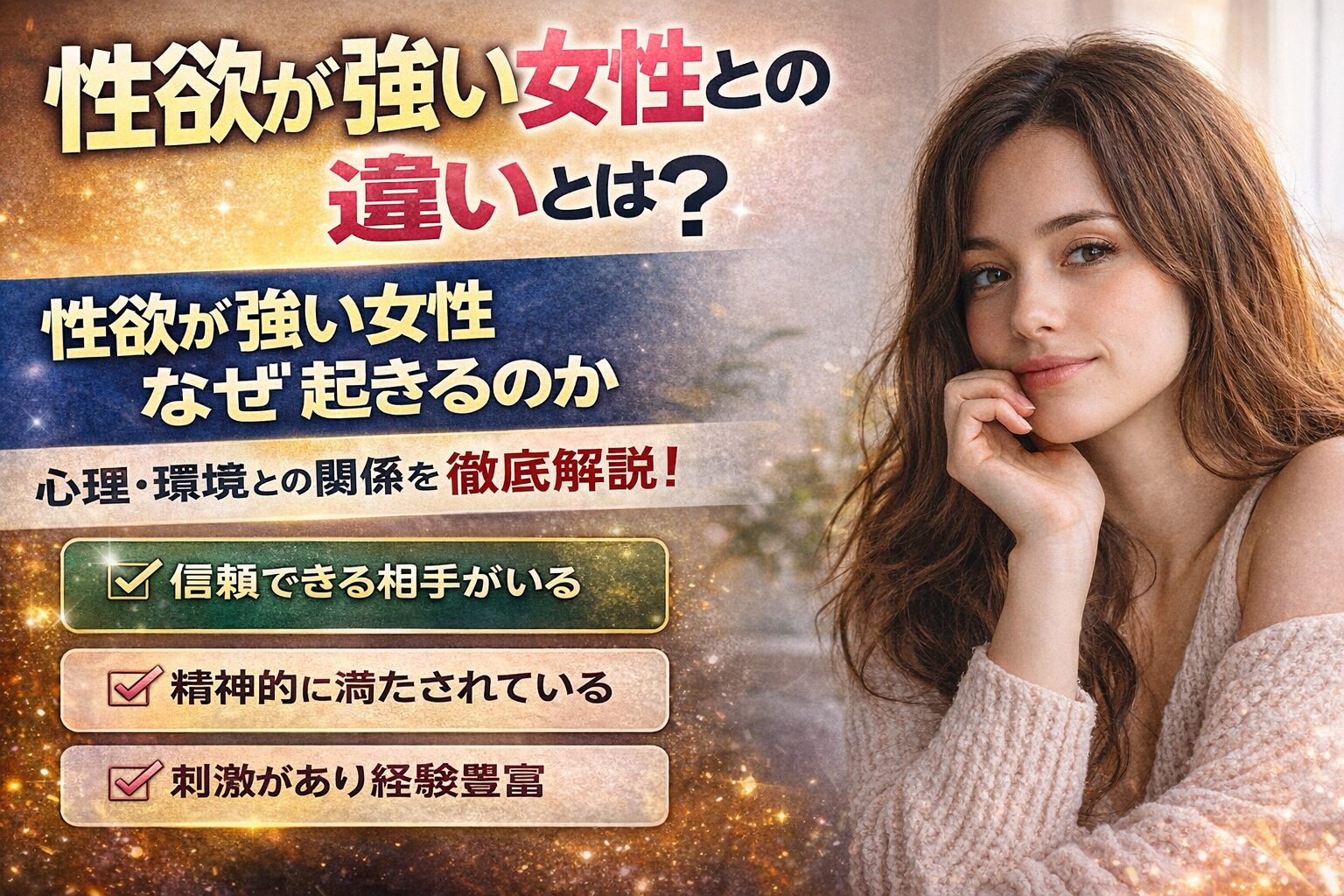 では具体的に、なぜ性欲が強くなるのか。ここからは原因と心理を分けて、現実的に解説していきます。
