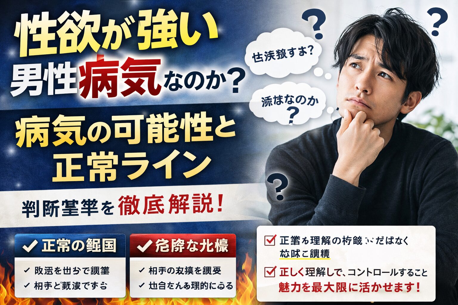 「なぜ自分はこんなに性欲が強いのか」「普通なのか、それとも異常なのか」――この疑問は、多くの男性が一度は感じたことがあるものです。