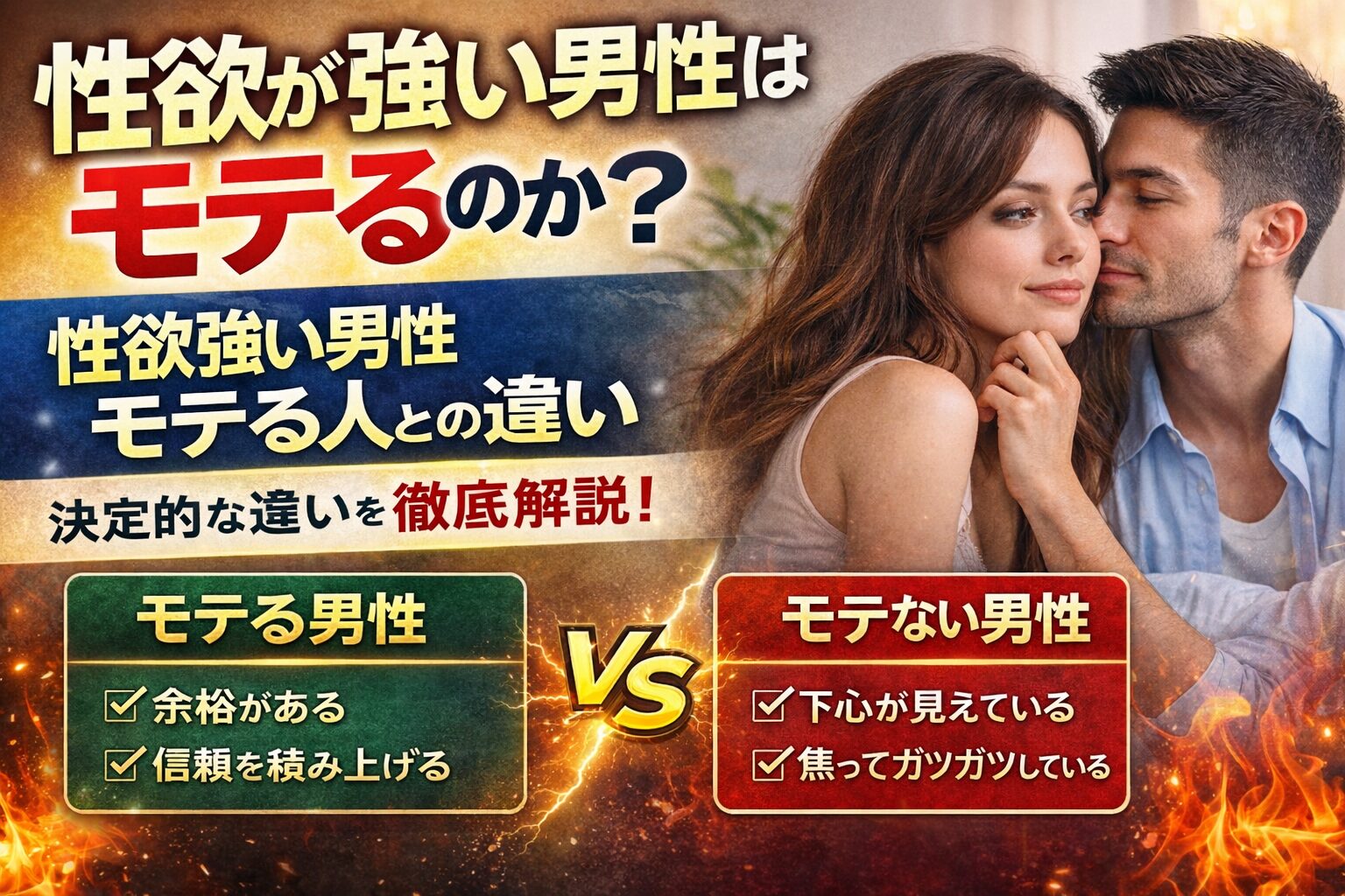一方で、同じように性欲が強くても、コントロールできている男性は「男らしさ」「魅力」として評価されるのも事実です。