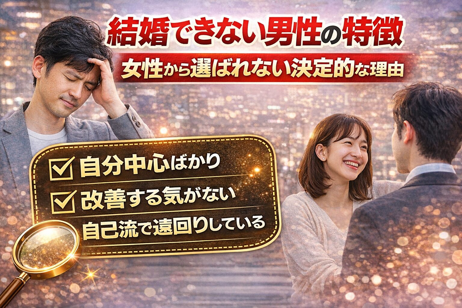 ではなぜ、同じような見た目でも「結婚できる男性」と「できない男性」に分かれるのでしょうか。