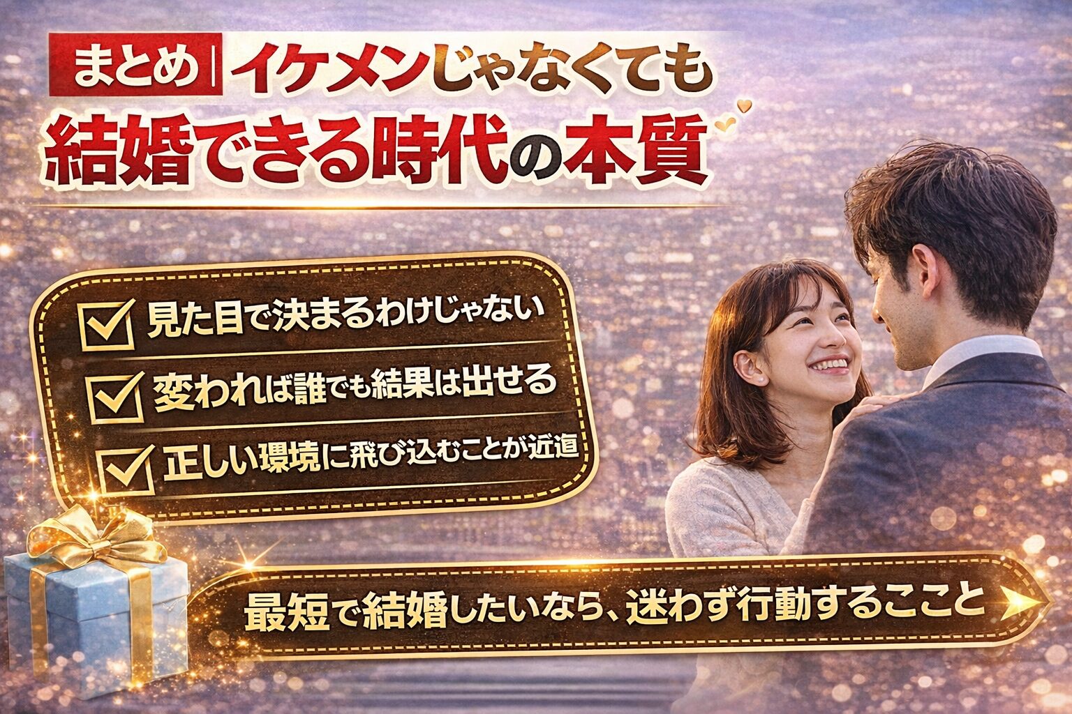 逆に言えば、見た目に自信がなくても、正しい設計ができていれば結婚は十分可能です。