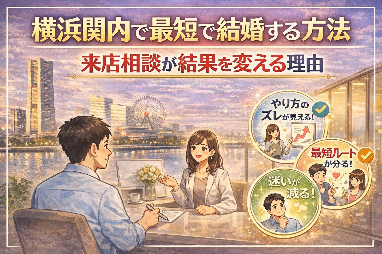 横浜関内で最短で結婚したいのであれば、来店相談は単なる選択肢の一つではなく、結果を変える大きなきっかけになります。