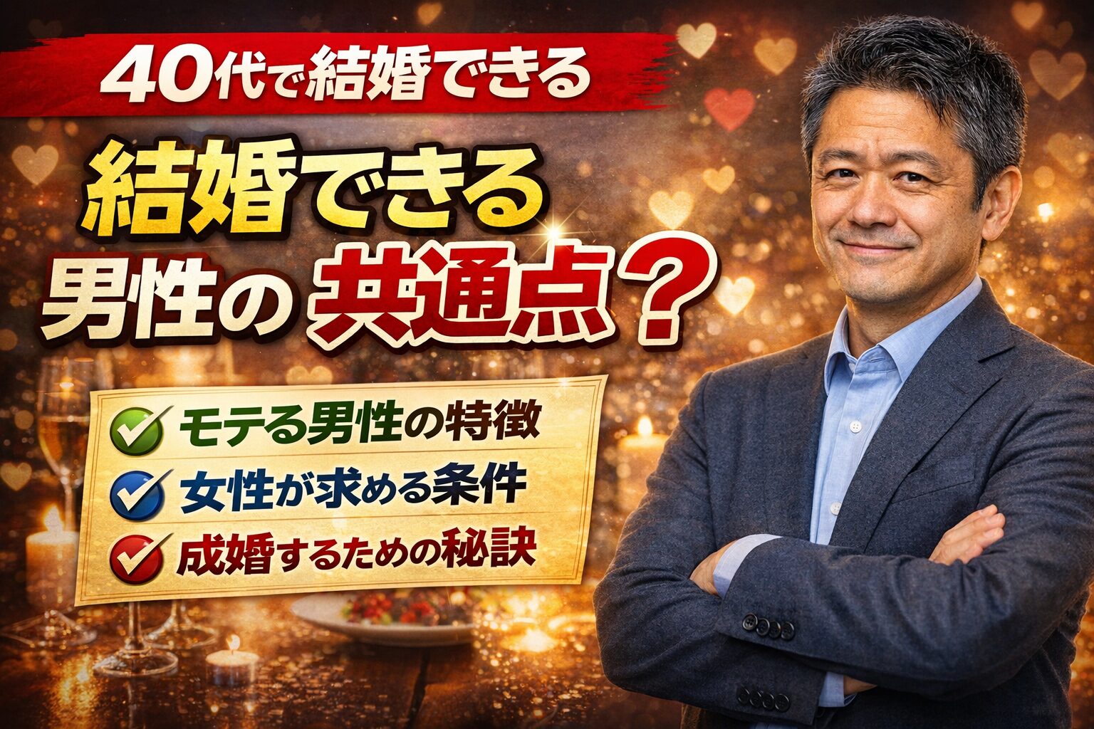 40代で結婚できる男性には、明確な共通点があります。
