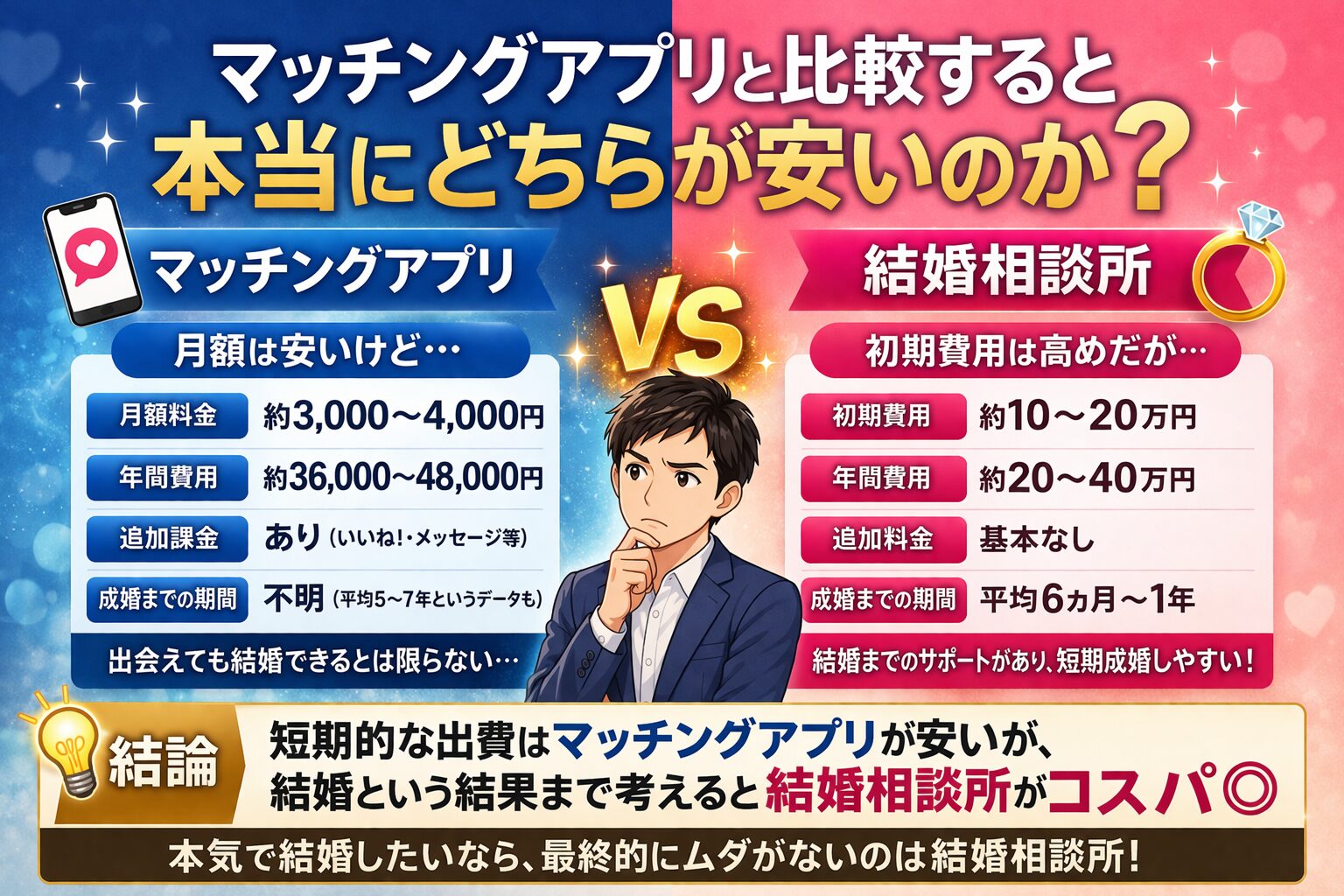 婚活で本当に見るべきなのは、目先の安さではなく、最終的に結婚へ近づけるかどうかです。
