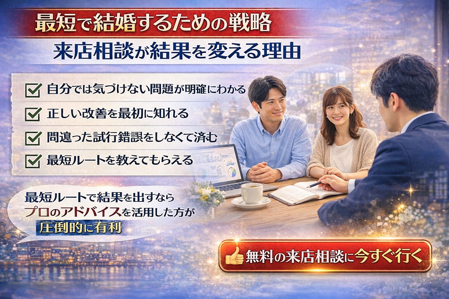 結婚に向けた現実的な方向性を一緒に確認していきます。