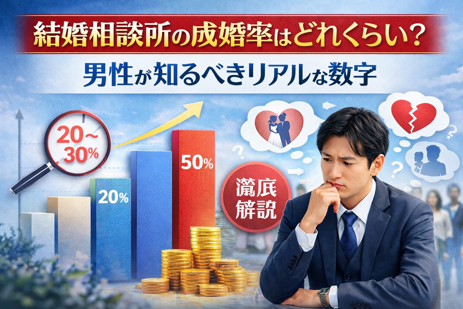 特に男性の場合、結婚相談所に入ること自体は難しくなくても、入会したあとに選ばれ続けること、そして実際に成婚まで進むことは、まったく別の話です。