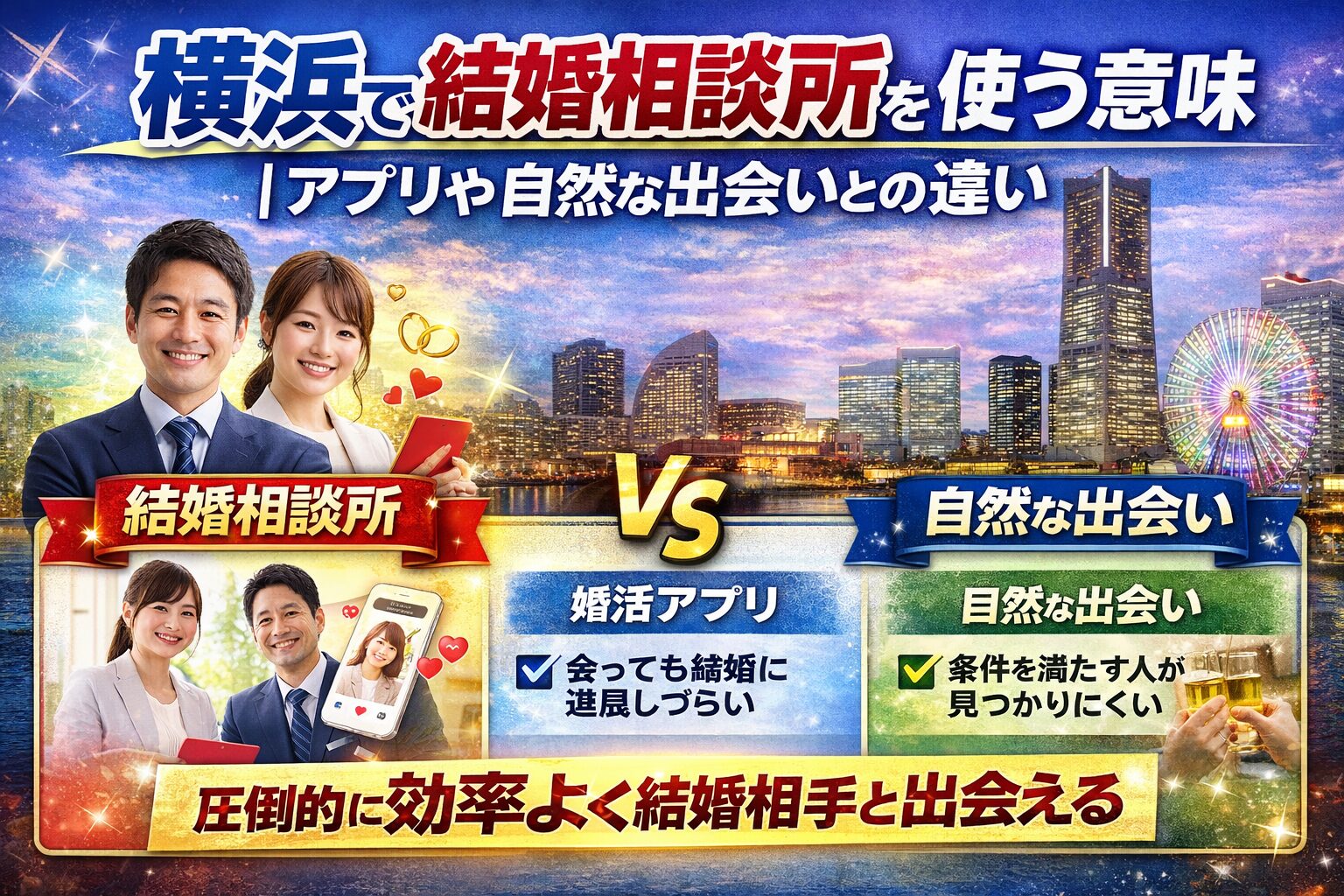 横浜は出会いのチャンスが多い一方で、婚活の競争も強い地域です。