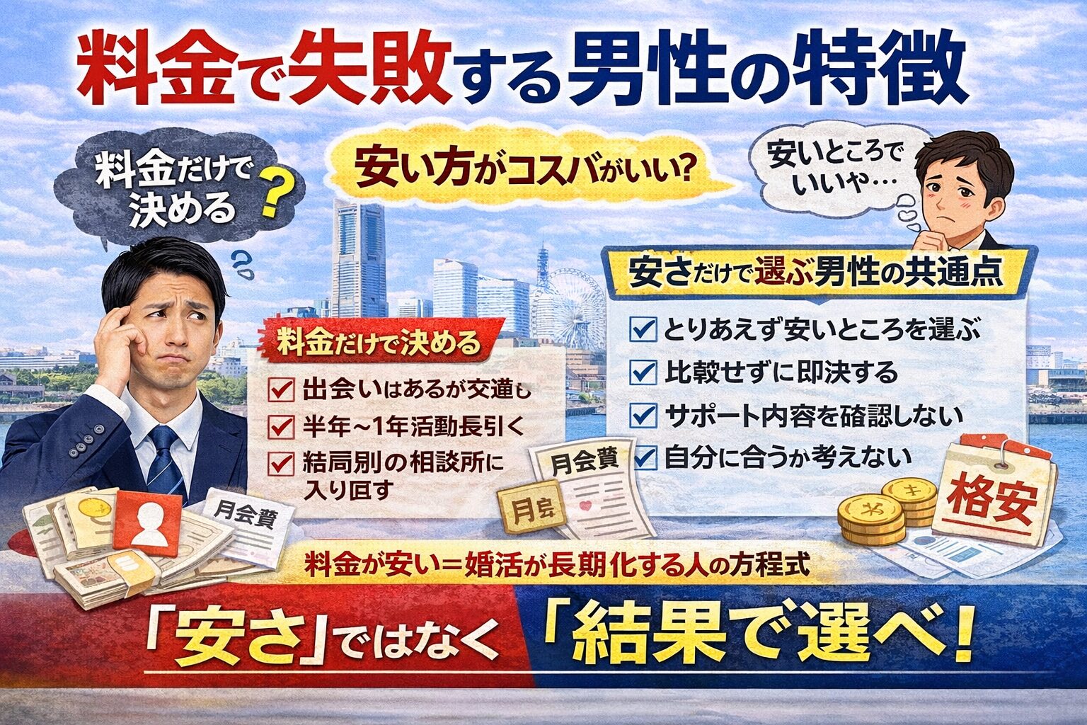 横浜の結婚相談所の料金は高い?男性のリアル総額と失敗しない選び方