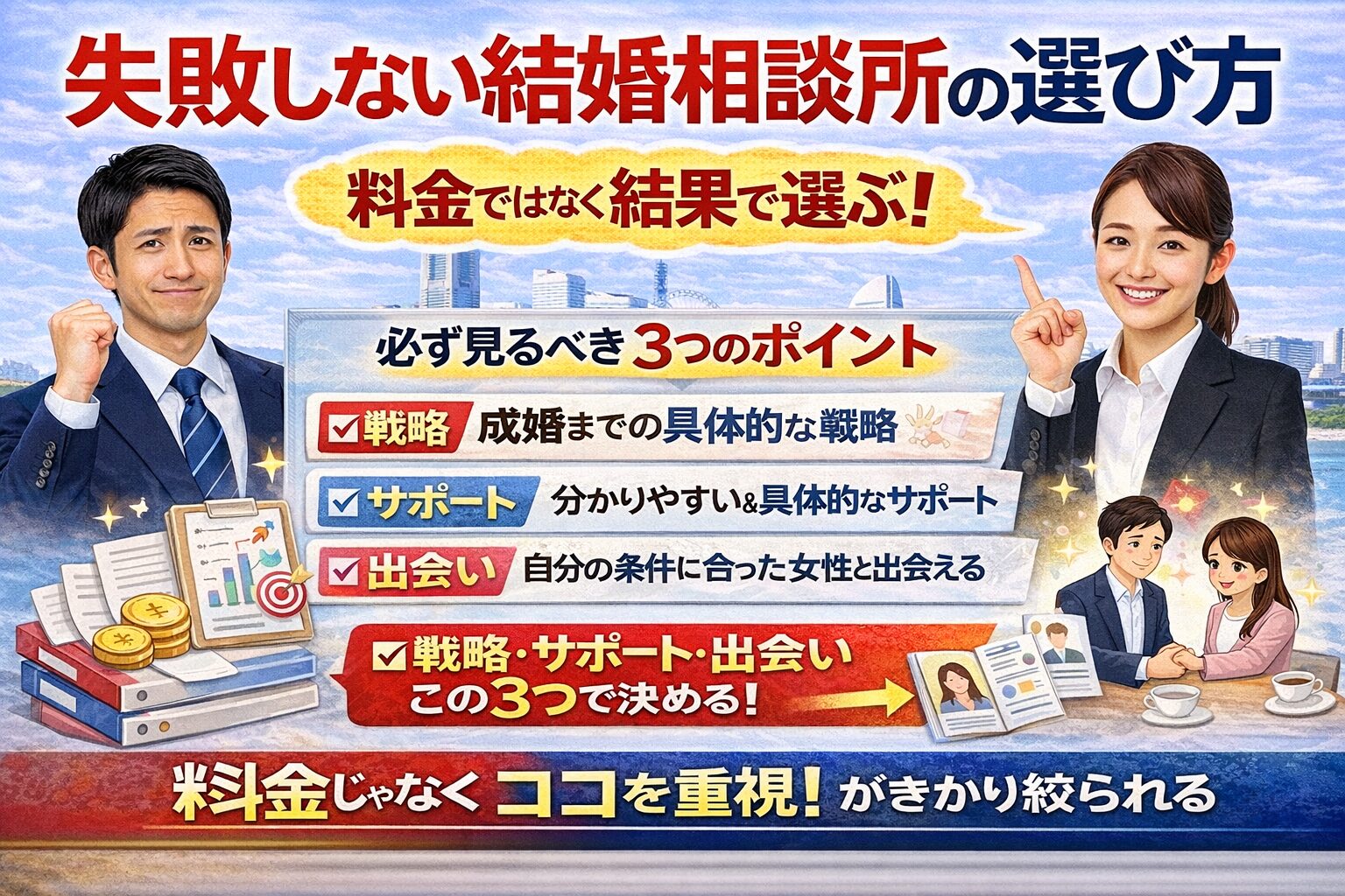 特に横浜は相談所の数が多いため、選び方を間違えると差が大きく出ます。