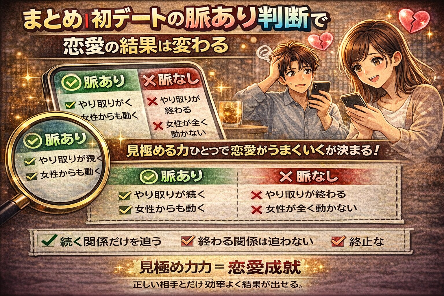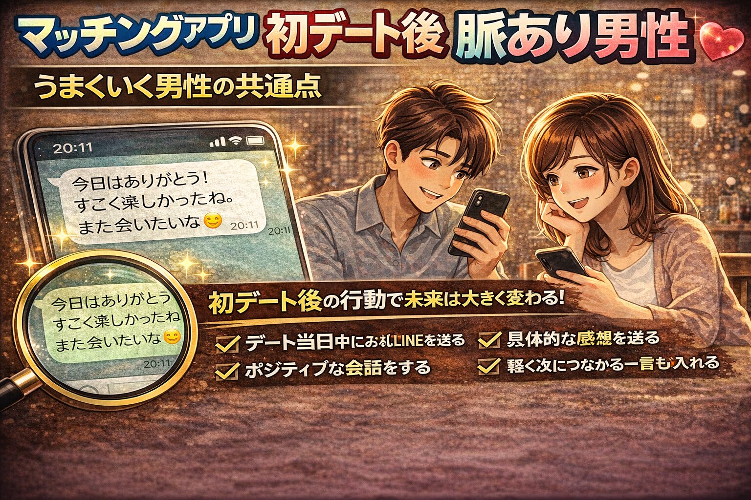 「マッチングアプリでの初デート後の脈あり・脈なしの見極め」まで、関連キーワードを踏まえて具体的に解説していきます。